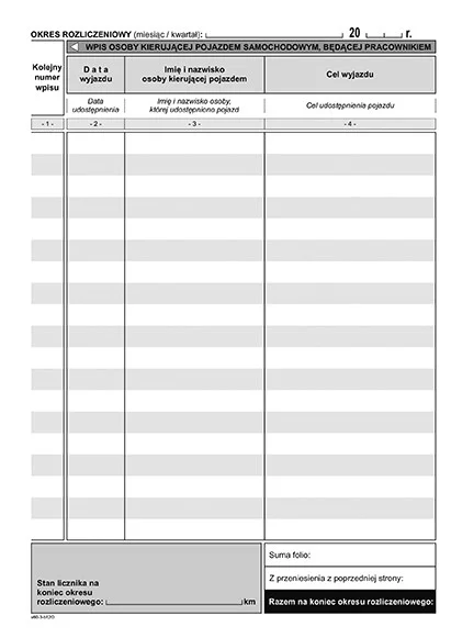V-60 Ewidencja przebiegu pojazdu dla celów podatku od towarów i usług