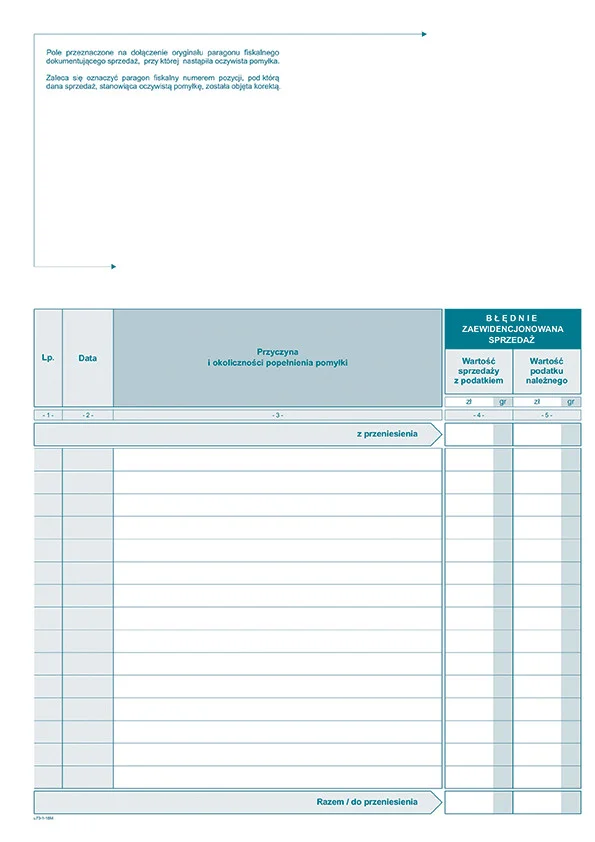 Vu-73u Ewidencja VAT oczywistych pomyłek dla kasy rejestrującej