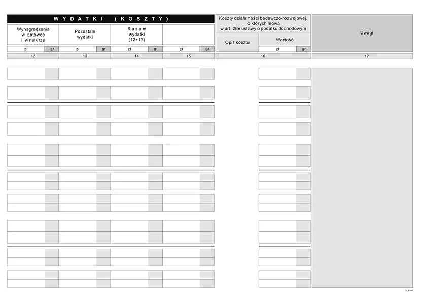 K-5u Podatkowa księga przychodów i rozchodów (dla prowadzących księgę za pomocą komputera lub za pośrednictwem biura rachunkowego)
