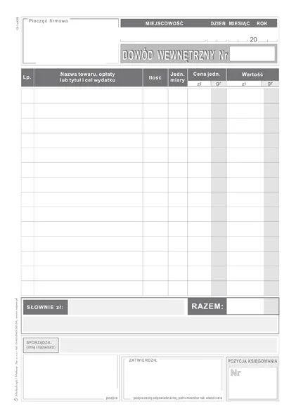 K12 Dowód wewnętrzny (dla podatników prowadzących podatkową księgę przychodow i rozchodów)