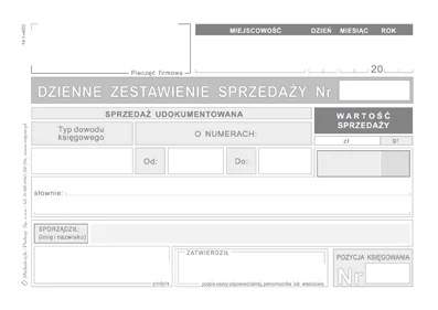 K14 Dzienne zestawienie sprzedaży udokumentowanej dla podatników prowadzących podatkową księgę przychodów i rozchodów
