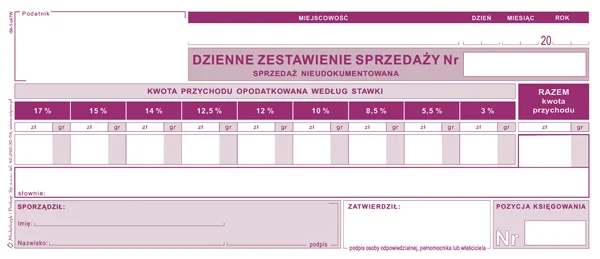 R5h Dzienne zestawienie sprzedaży - nieudokumentowanej (dla podatników zryczałtowanego podatku dochodowego)