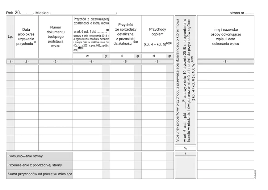 PKPiR (Rozp. MF w sprawie prowadzenia podatkowej księgi przychodów i rozchodów)