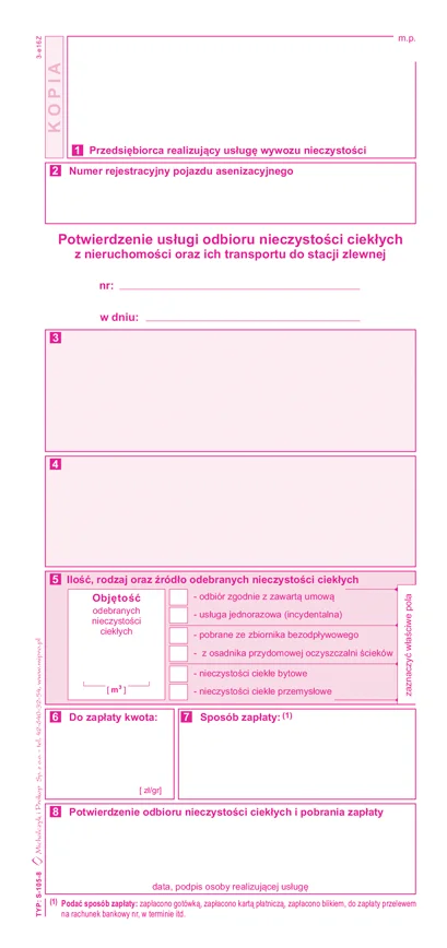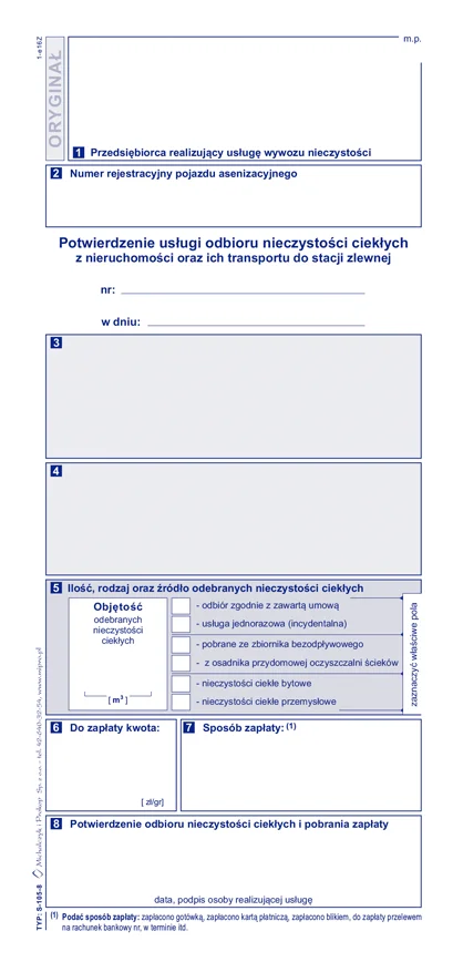 S-105-8 Potwierdzenie usługi odbioru nieczystości ciekłych z nieruchomości oraz ich transportu do stacji zlewnej