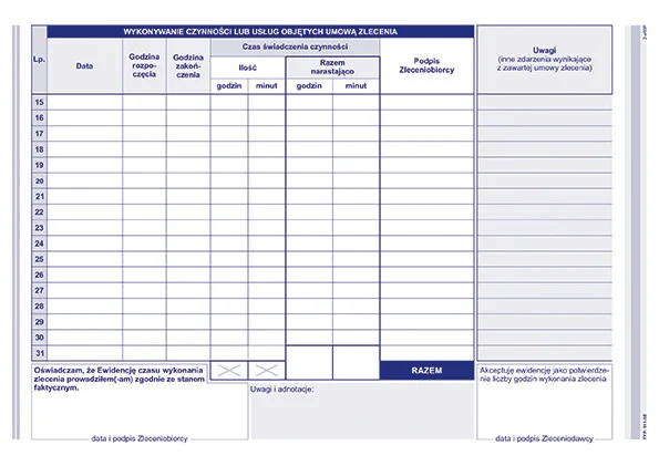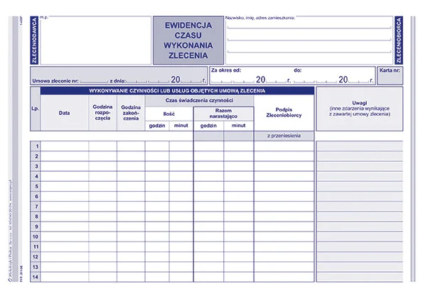 511-3E Ewidencja czasu wykonywania umowy zlecenia