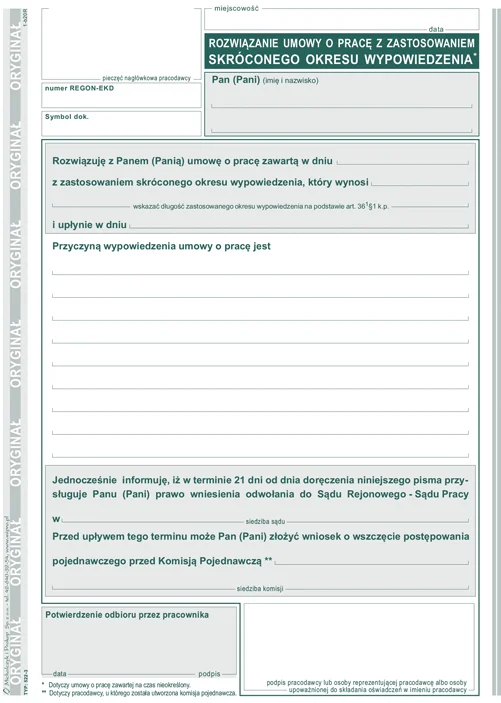 522-3 Rozwiązanie umowy o pracę z zastosowaniem skróconego okresu wypowiedzenia