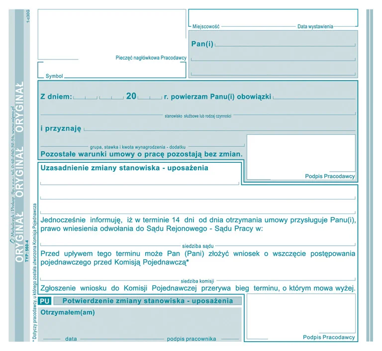 560-4 Potwierdzenie zmiany stanowiska - uposażenia