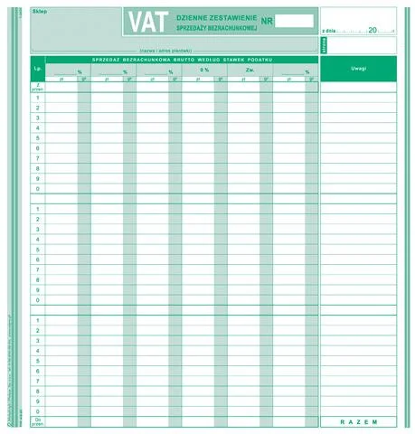 418-2U VAT - kontrolka sprzedaży dzienne zestawienie sprzedaży bezrachunkowej