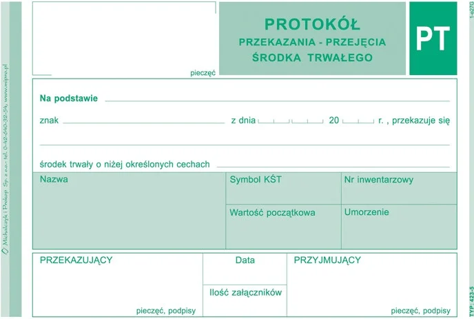 423-5 PT protokół przekazania/przyjęcia środka trwałego