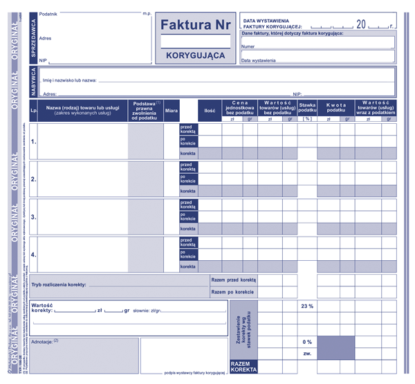 | zastosowanie: | Faktury i inne dokumenty wynikające z przepisów o podatku od towarów i usług |