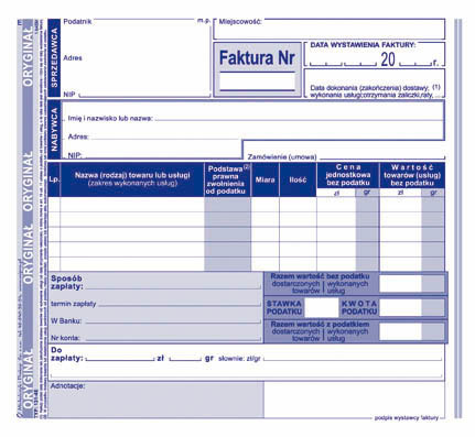 | zastosowanie: | faktury i inne dokumenty wynikające z przepisów o podatku od towarów i usług |