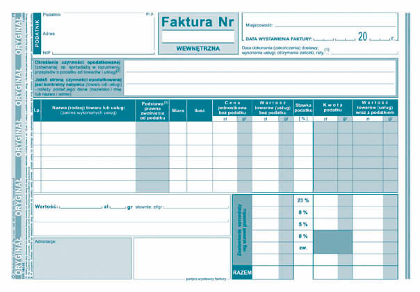| zastosowanie: | faktury i inne dokumenty wynikające z przepisów o podatku od towarów i usług |
