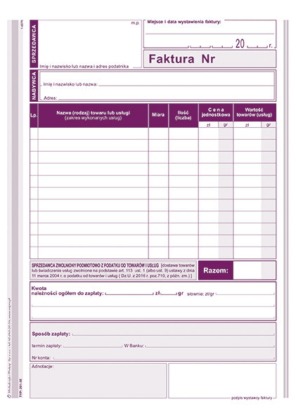 | zastosowanie: | faktury i inne dokumenty wynikające z przepisów o podatku od towarów i usług |