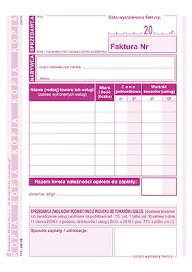 | zastosowanie: | faktury i inne dokumenty wynikające z przepisów o podatku od towarów i usług |