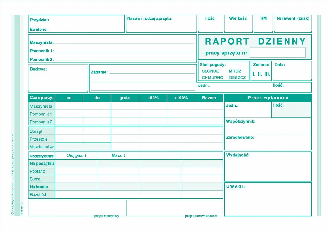 790-3 Raport dzienny pracy sprzętu