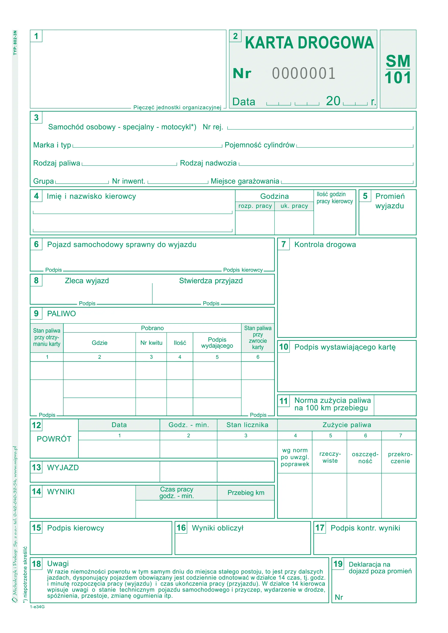 802-3N Karta drogowa sm/101 numerowana (samochód osobowy)