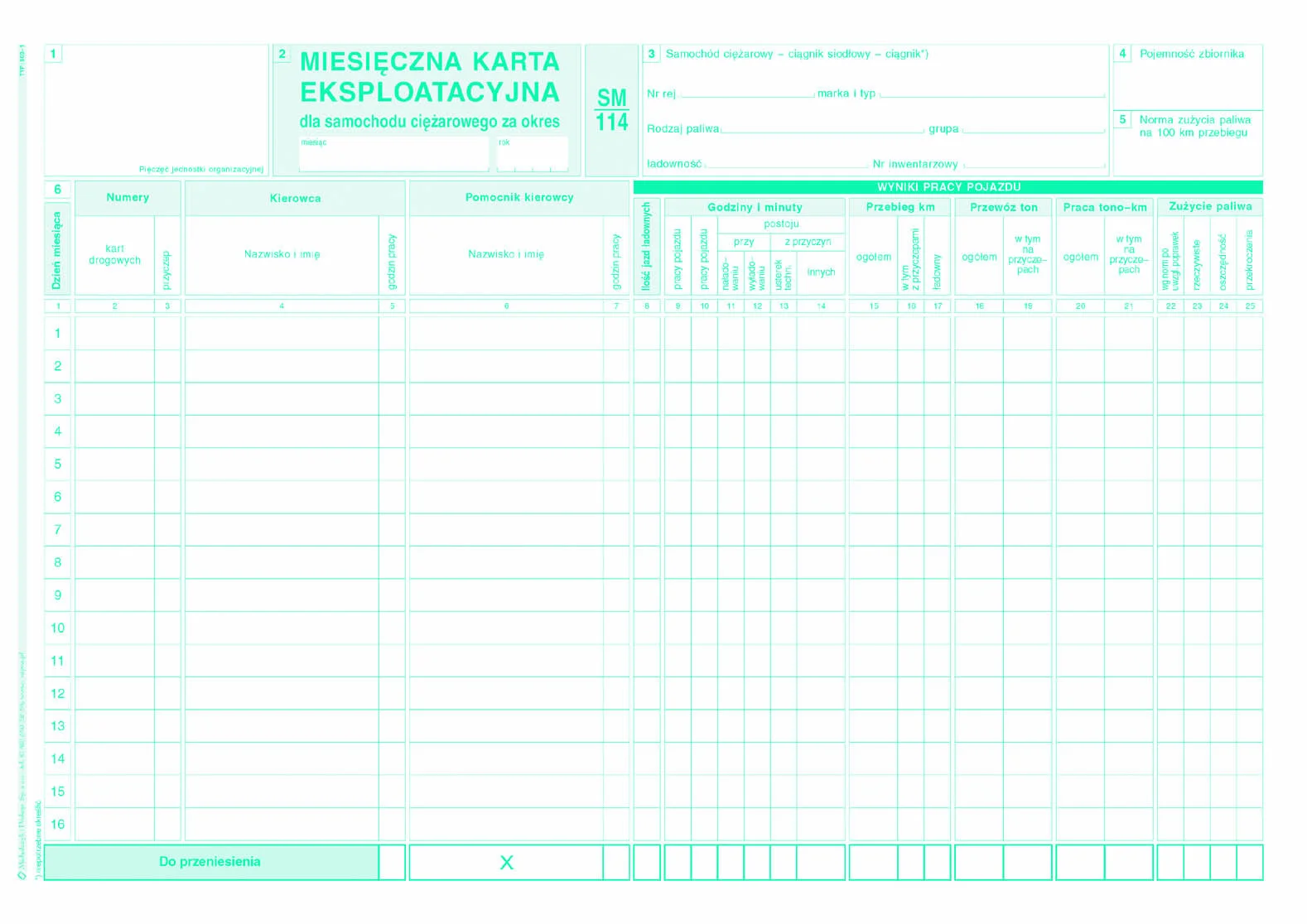 803-1 Miesięczna karta eksploatacyjna sm/114 (samochód ciężarowy)