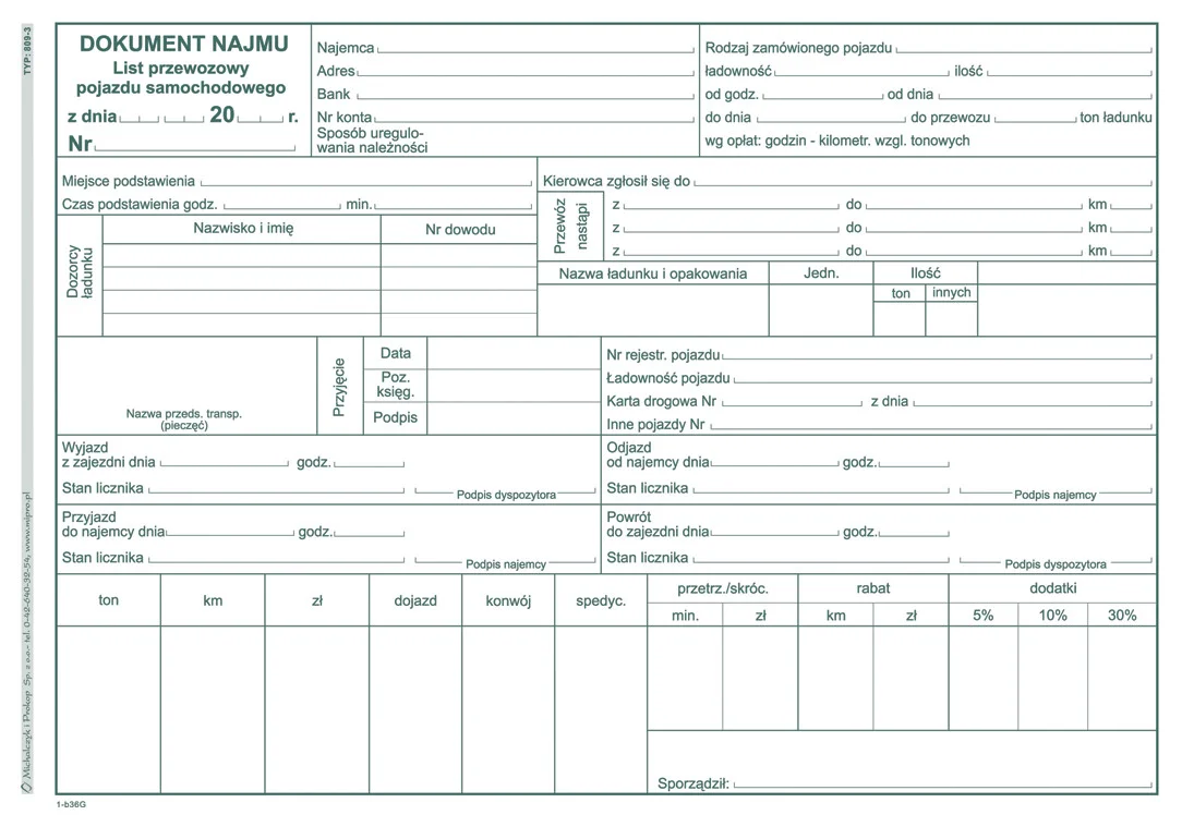 809-3 Dokument najmu pojazdu z listem przewozowym