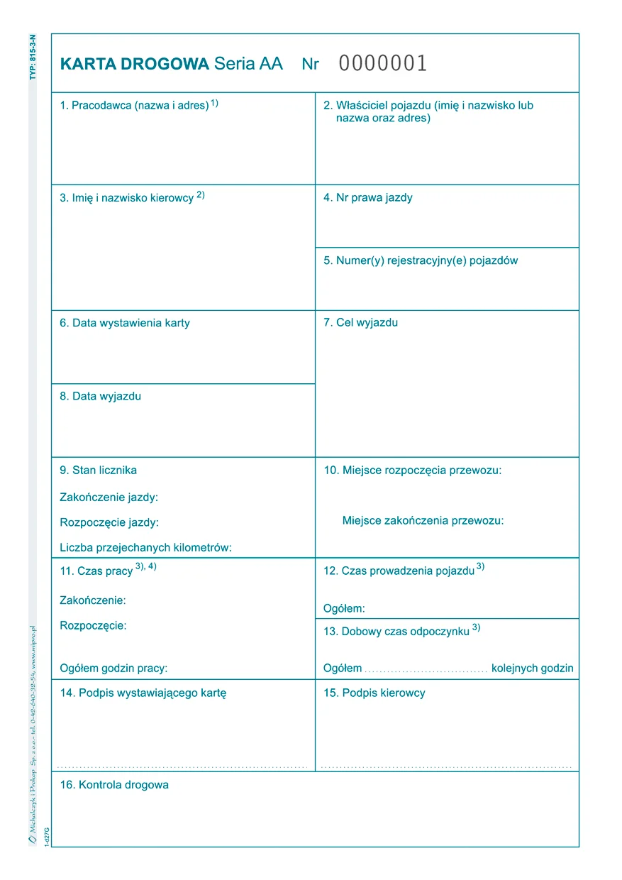 815-3N Karta drogowa (numerowana)