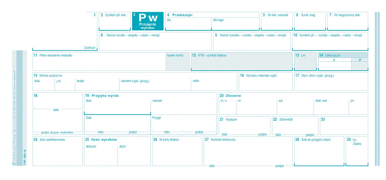 381-8 PW przyjęcie wyrobu jednopozycyjne