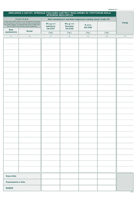 305-1 Ewidencja sprzedaży zwolnionych z akcyzy wyrobów węglowych