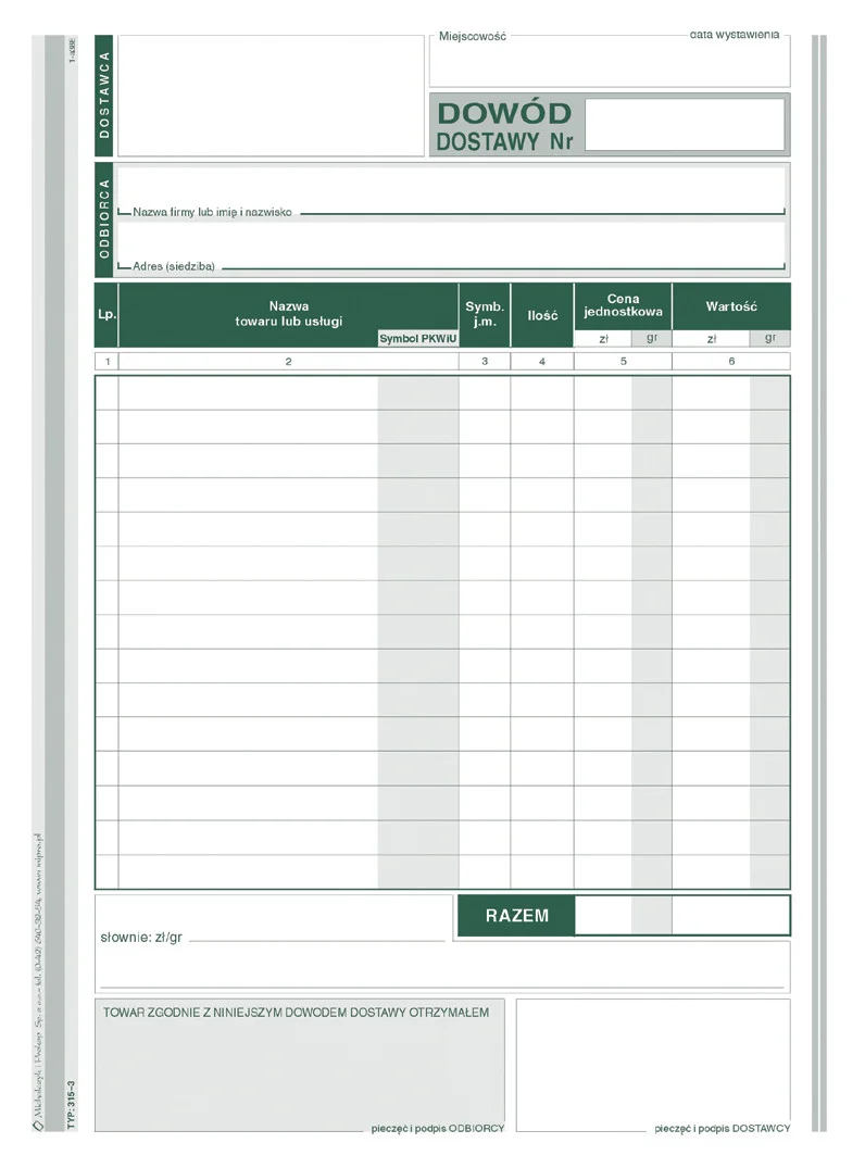 315-3 Dowód dostawy