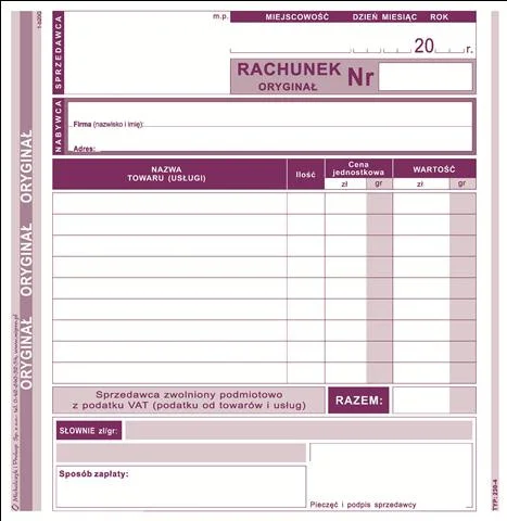 230-4 Rachunek dla zwolnionych podmiotowo z VAT