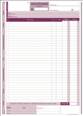 231-1 Rachunek dla zwolnionych podmiotowo z VAT