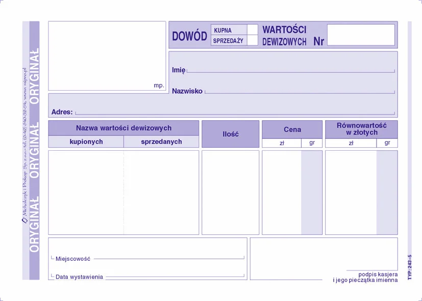 243-5 Dowód kupna-sprzedaży wartości dewizowych