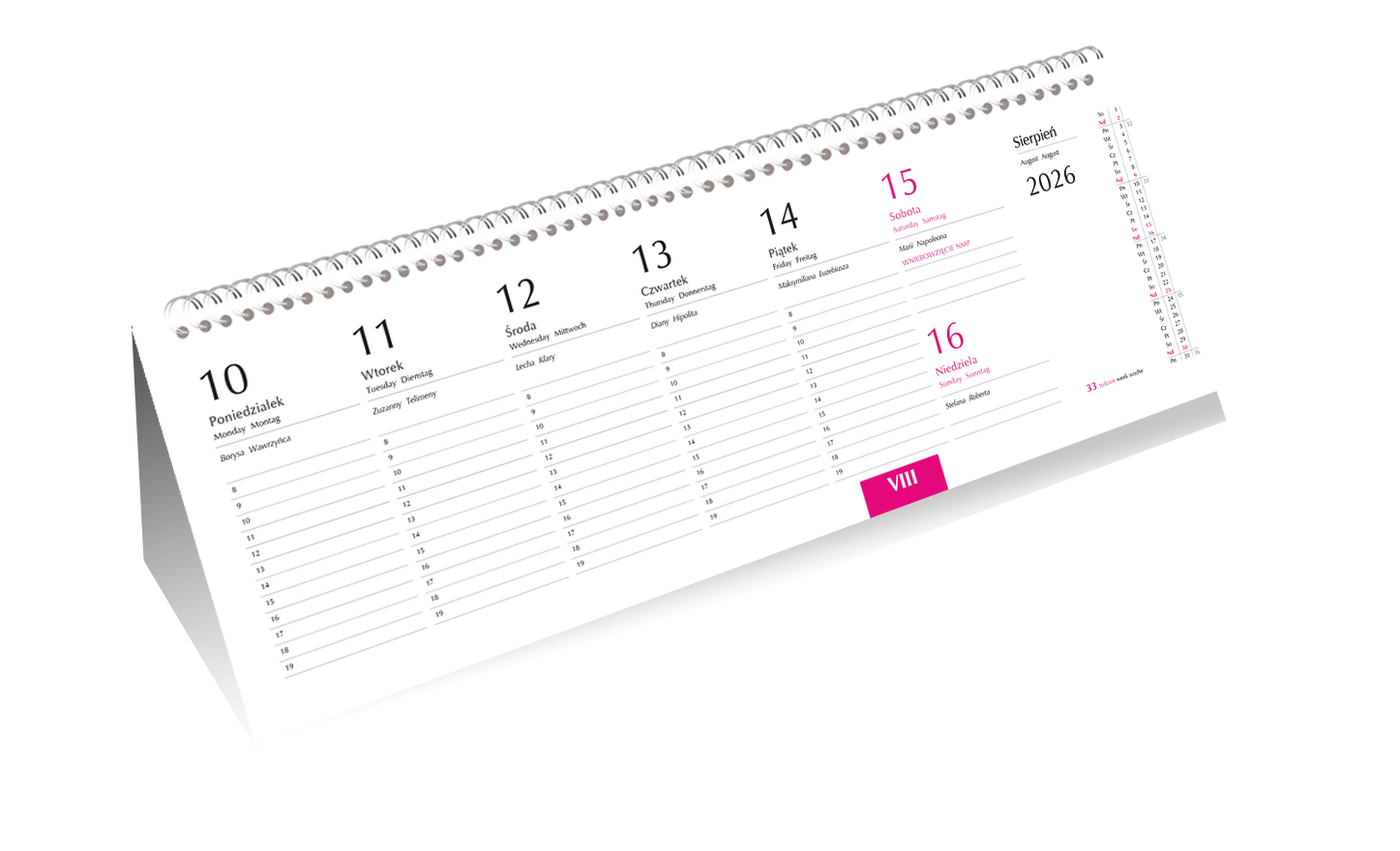 | układ kalendarium: | 1 tydzień - 1 strona | |