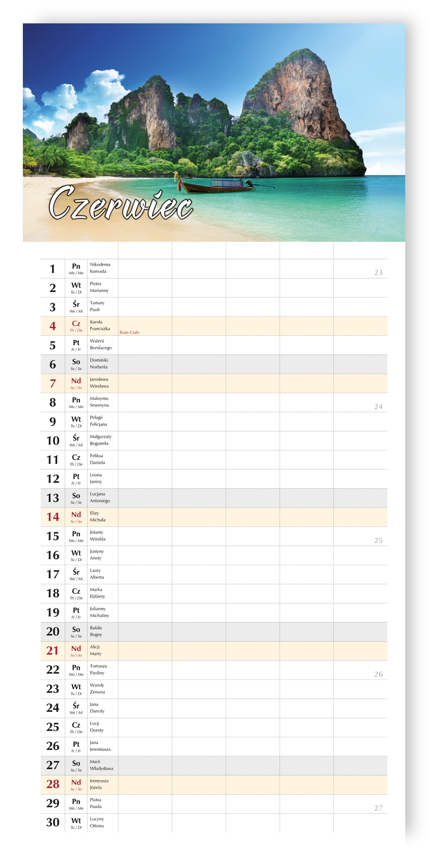 | układ kalendarium: | 1 miesiąc - 1 strona |