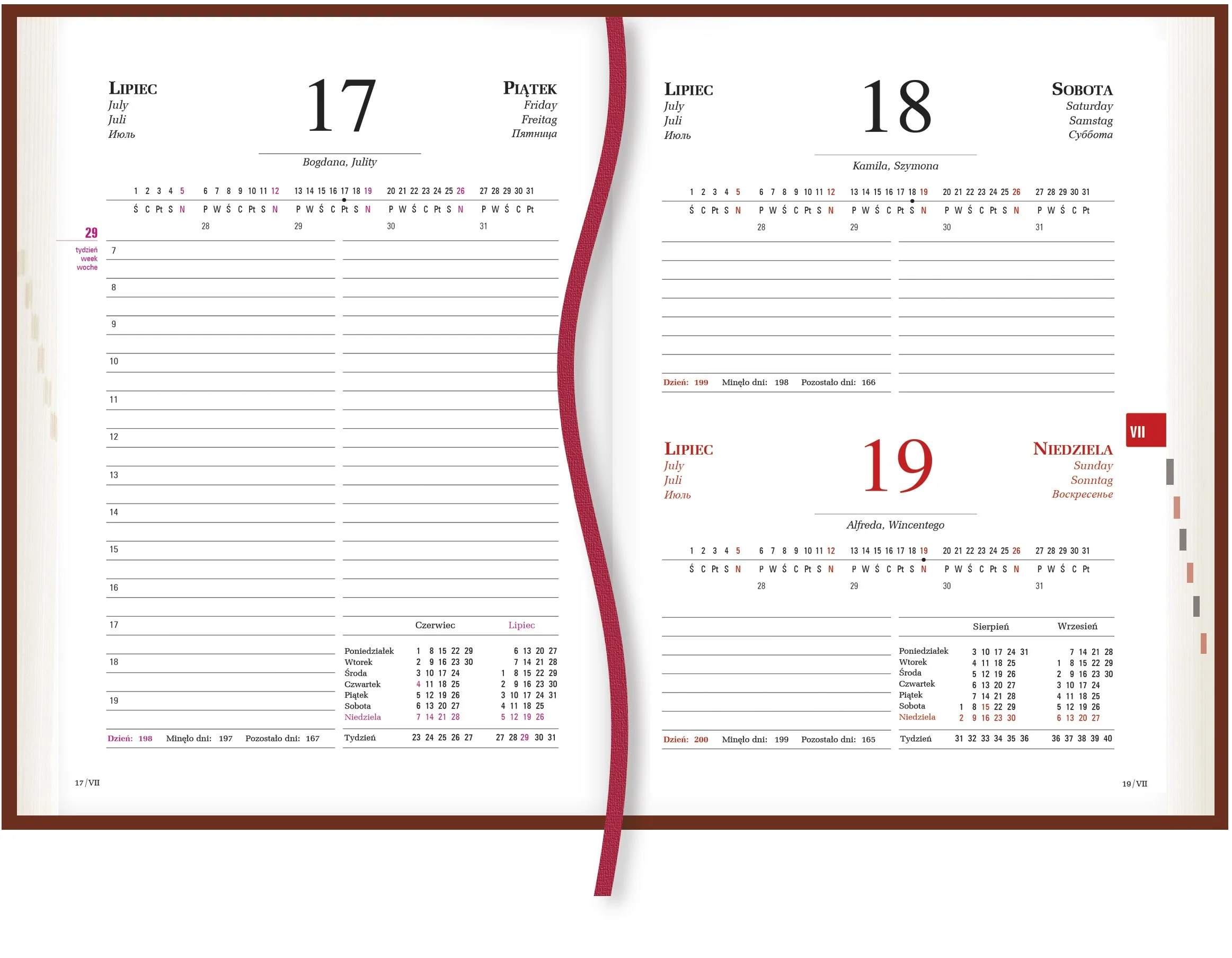| układ kalendarium: | 1 dzień - 1 strona |