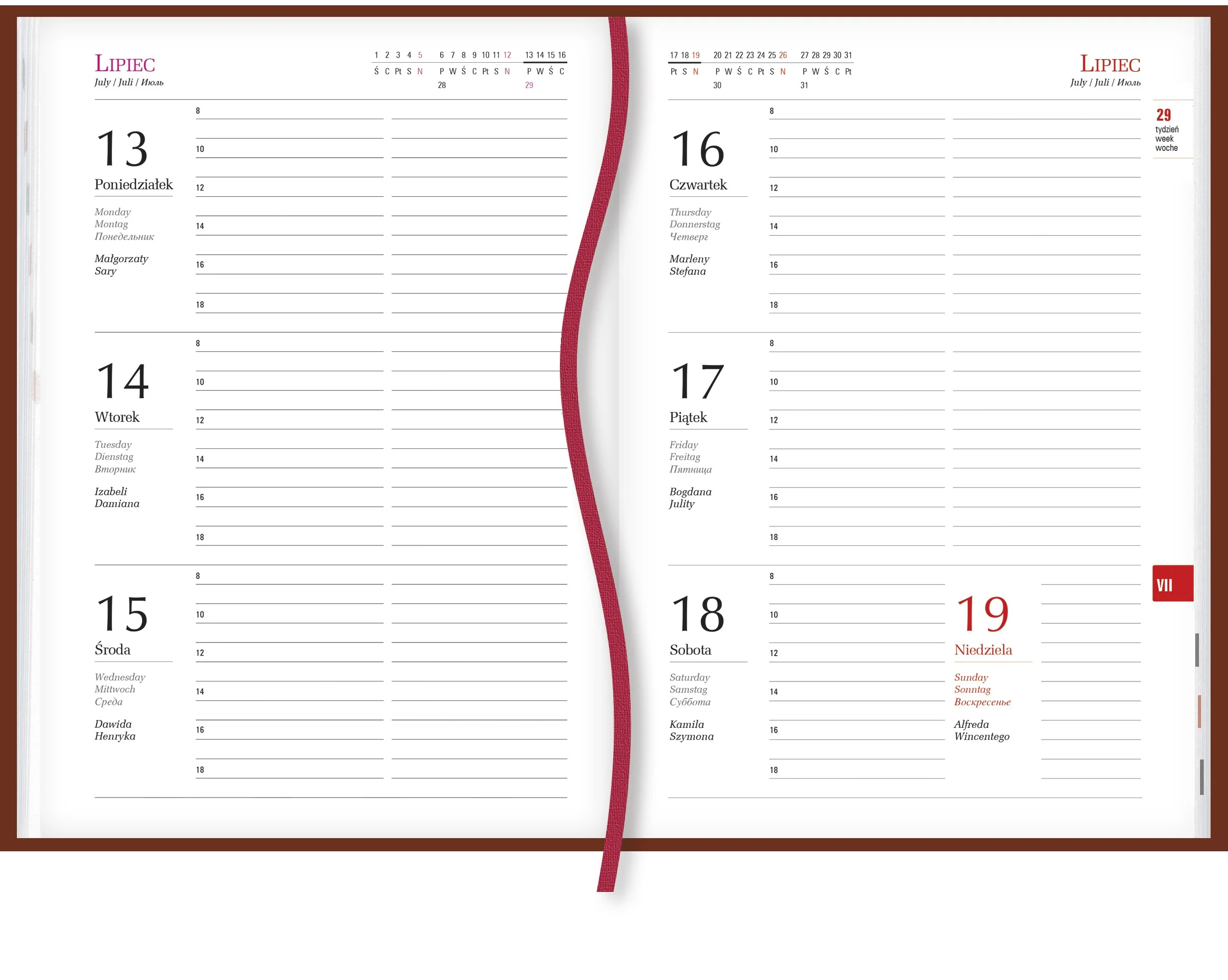| układ kalendarium: | 1 tydzień - 2 strony |